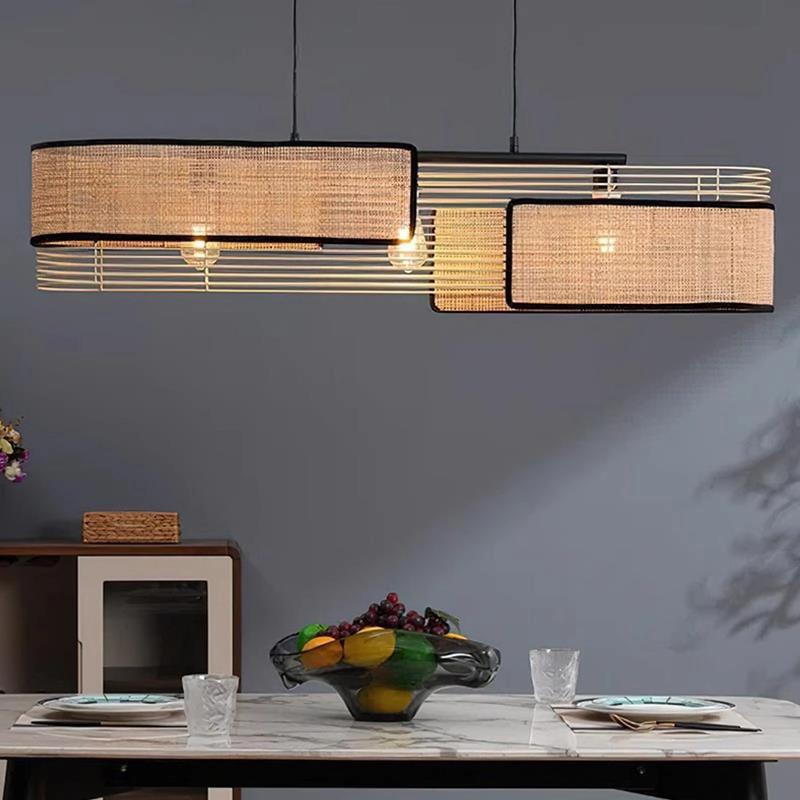TOMAX D150CM/59INCH Ratten Large Linear Chandelier Woven Hanging Lamp Over Long Dining Table