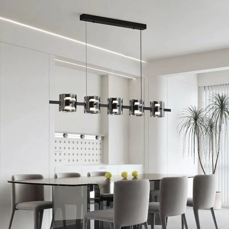 TOMAX 160CM/63INCH Smoke Grey Glass large Linear Chandelier for Kitchen Island Dining Room