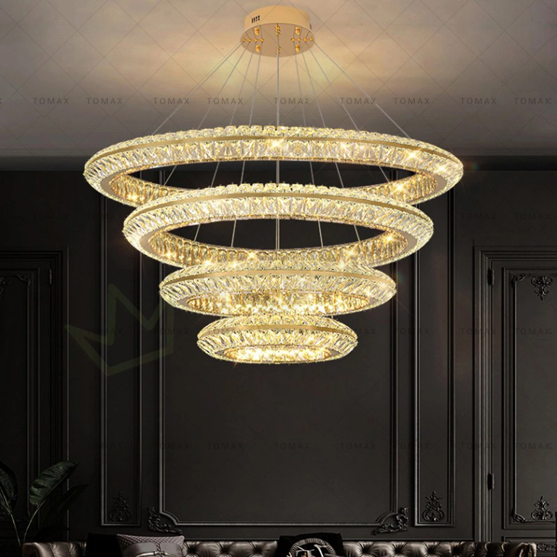 TOMAX 100CM/39INCH Modern 2-Tier Crystal Chandelier for Living Room Staircase